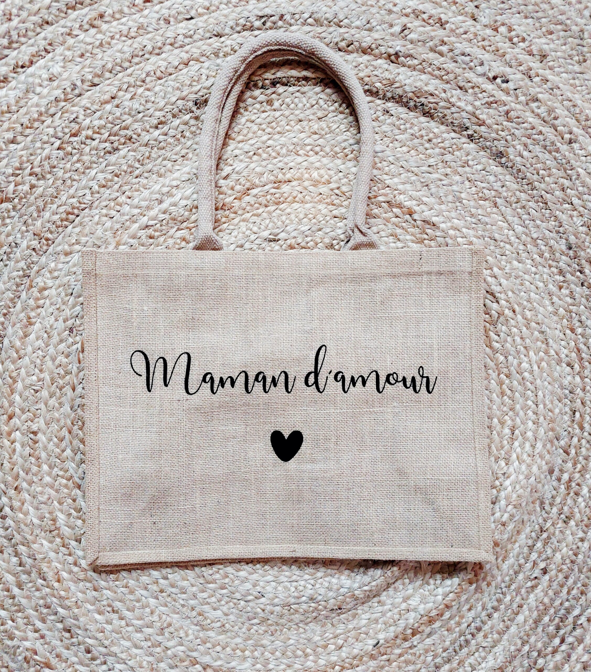 Tous mes sacs cabas en jute sont modifiables sur simple demande (coloris, ajout de déco, personnalisation prénom, petit mot, forme).