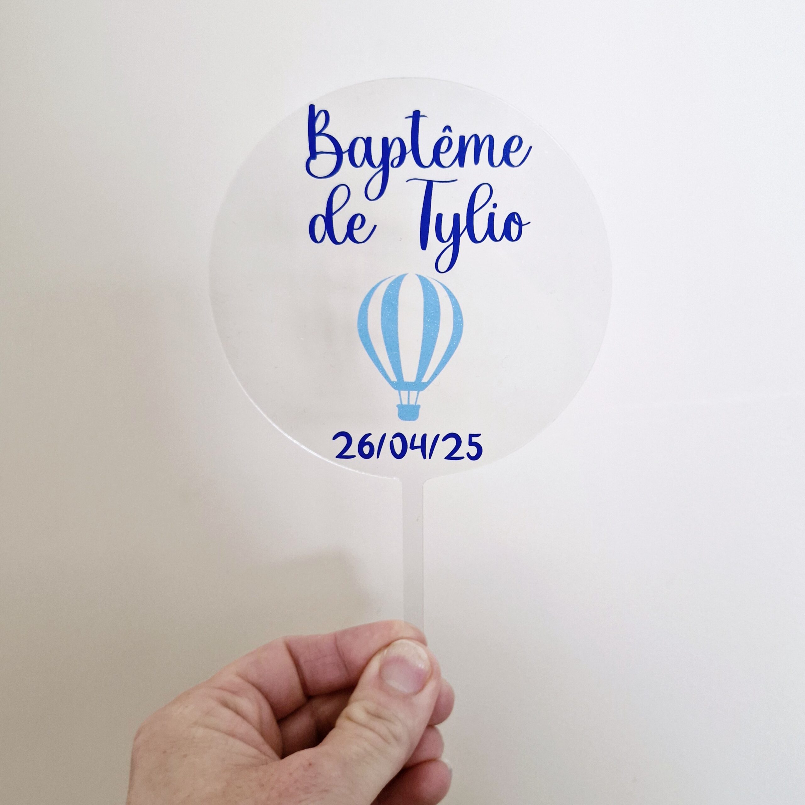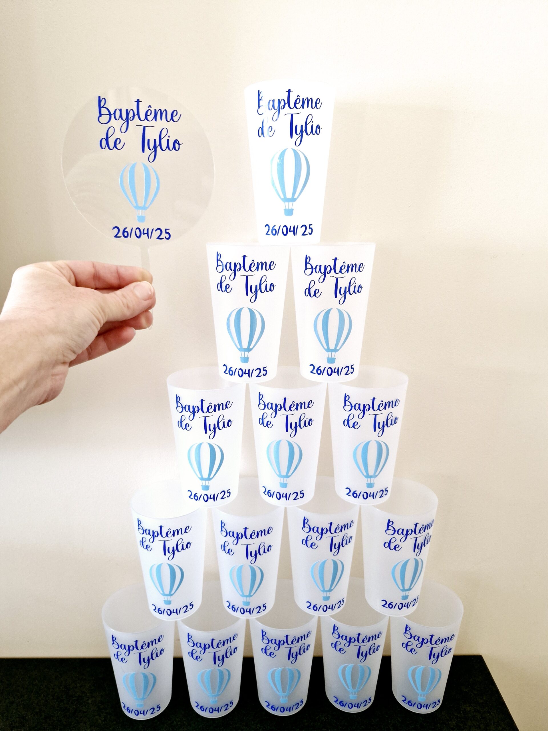 Cake topper personnalisé assortie au gobelet. Une idée originale pour garder un petit souvenir d’une journée particulière.