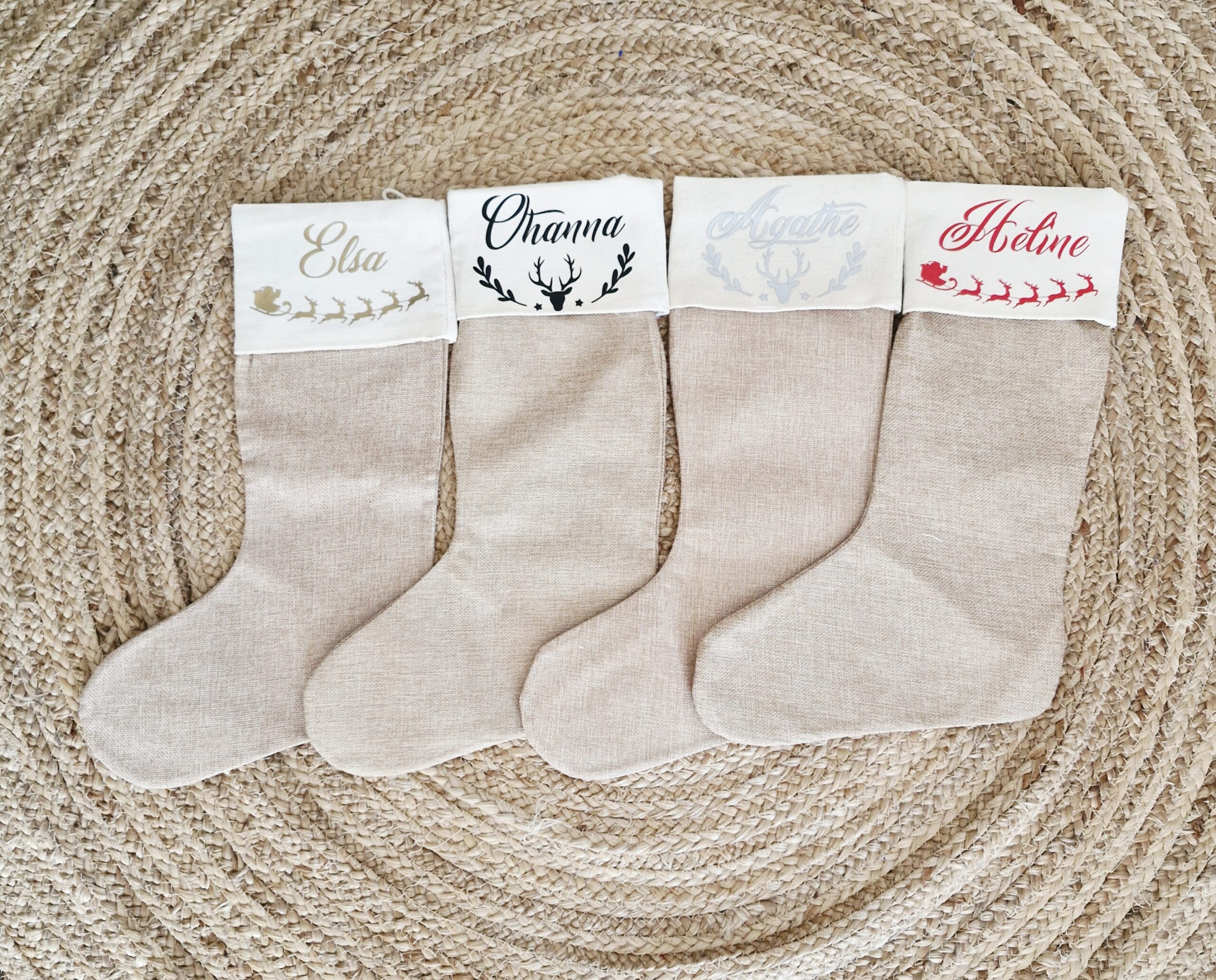 La chaussette en toile de jute est un élément de décoration indispensable pour noël, Elle est à suspendre sur la cheminée ou contre un meuble pour y glisser des petits cadeaux ou tout simplement à laisser en décoration.