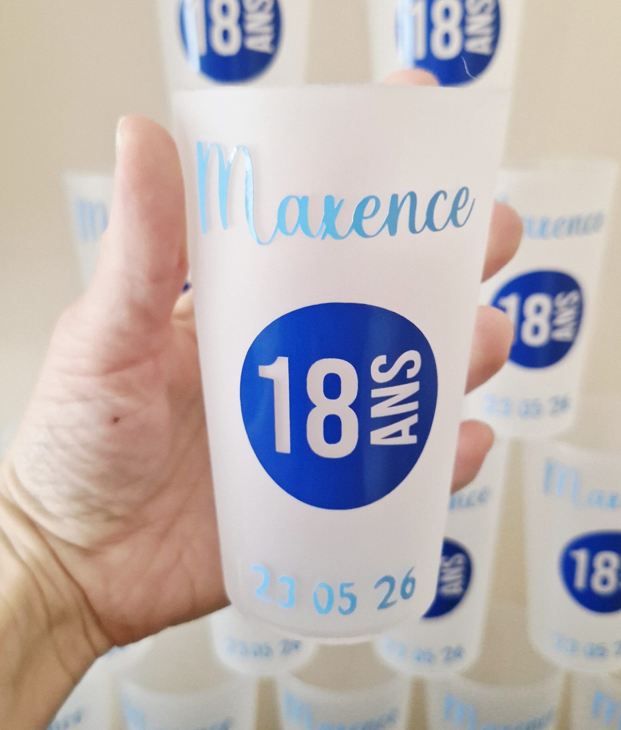 Gobelet personnalisé et réutilisable. Une idée originale pour garder un petit souvenir d’une journée particulière sans bisphénol A .